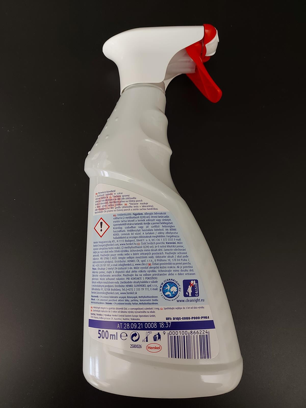 Clin je účinný čisticí prostředek na skleněné povrchy, který je vybaven praktickým rozprašovačem pro pohodlnou aplikaci. Pěna se při použití přesně nanáší na požadované místo, nestéká a účinně odstraňuje nečistoty, šmouhy a mastnotu.