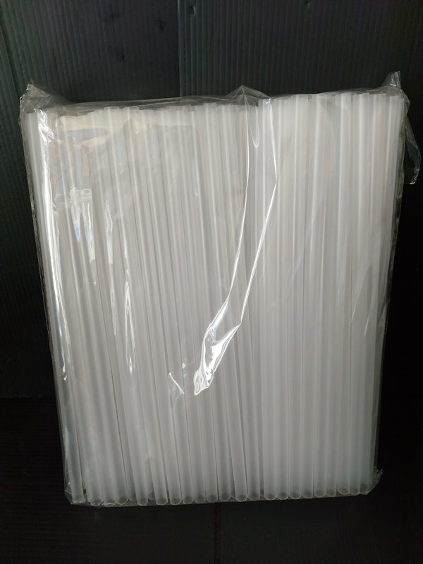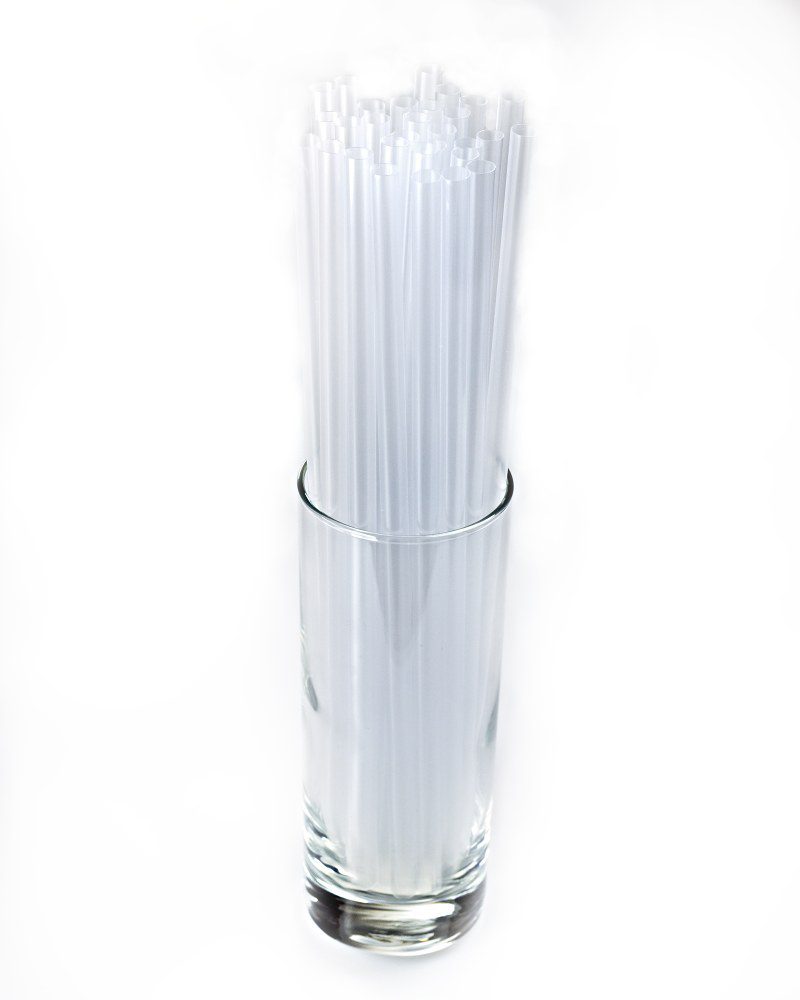Plastová brčka JUMBO – opakovaně použitelná, bílá (čirá), 8 × 250 mm