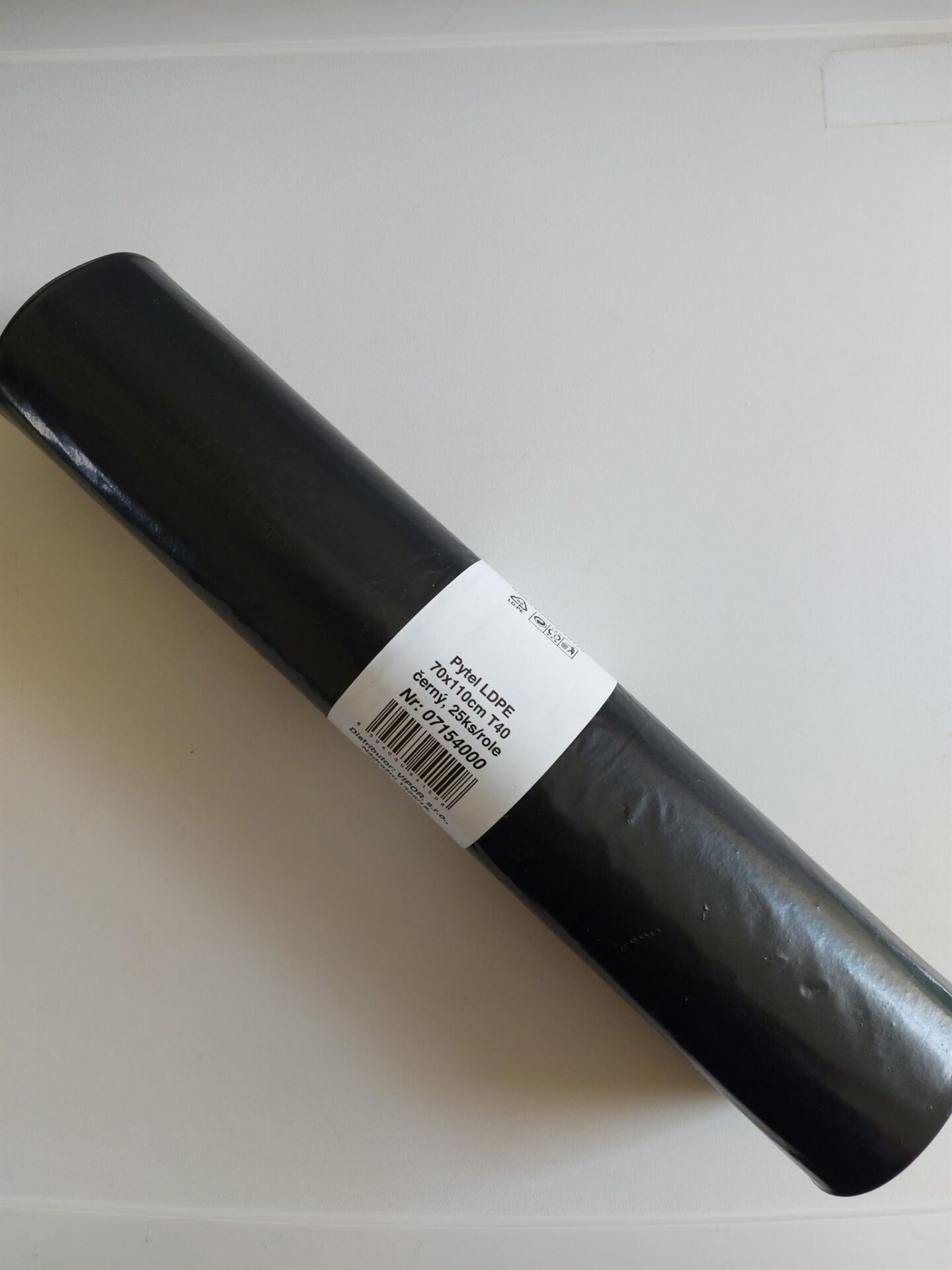 Pytel na odpad o objemu 120 litrů a rozměrech 70 × 110 cm je vyroben z vysoce kvalitní LDPE fólie s gramáží T40. Tento černý pytel lze použít samostatně nebo umístit do odpadní nádoby.