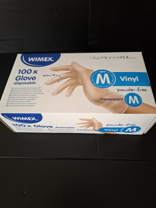 Vinylové jednorázové rukavice M – nepudrované, bez latexu