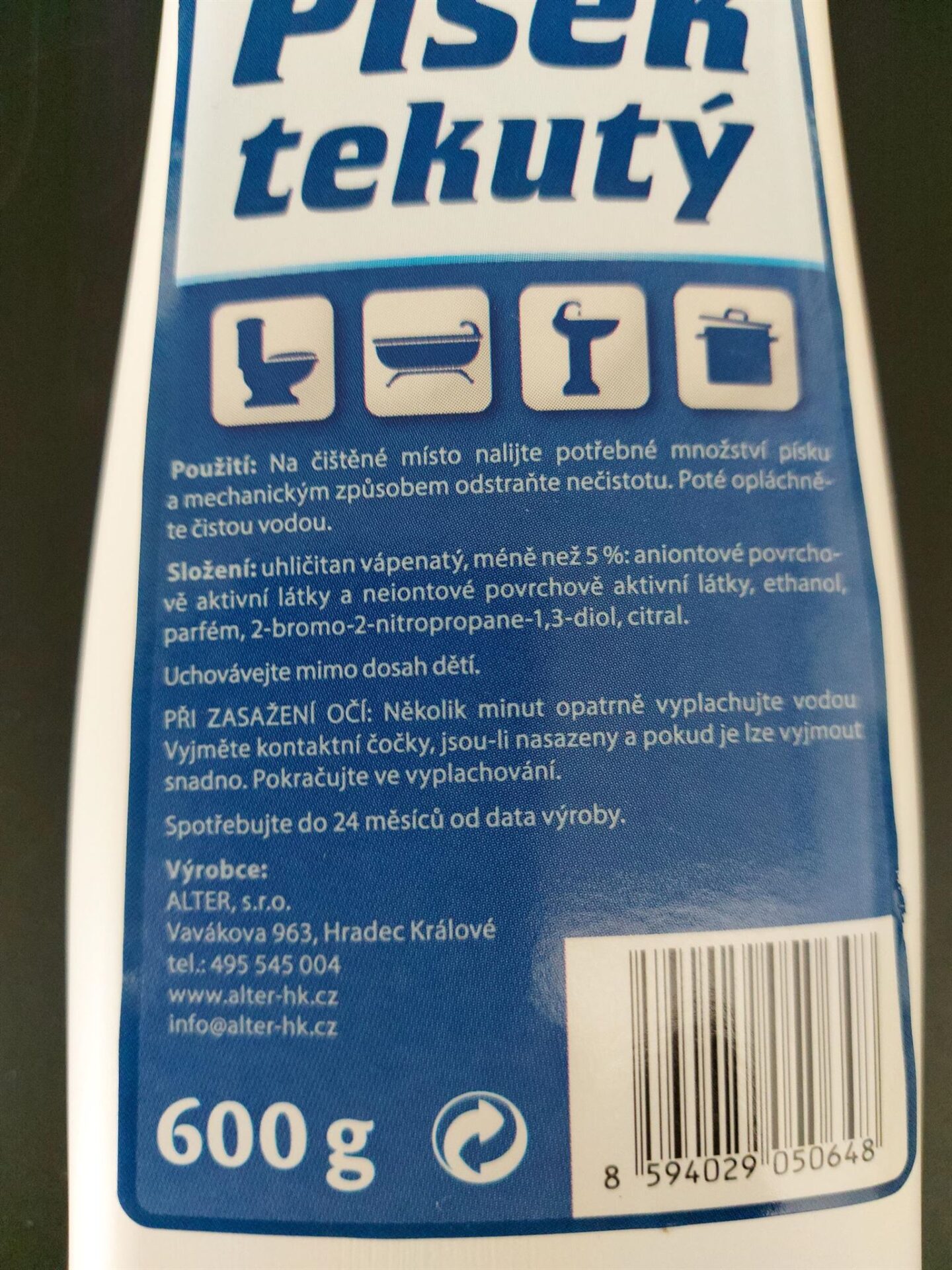 Jemný bílý tekutý písek je účinný čisticí prostředek určený pro mytí silně znečištěného nádobí, vhodný jak pro gastro provozy, tak i pro běžné domácnosti. Díky svému složení účinně odstraňuje zaschlé nečistoty, mastnotu i připáleniny, aniž by poškrábal povrch. Je šetrný k nádobí a přitom vysoce účinný.