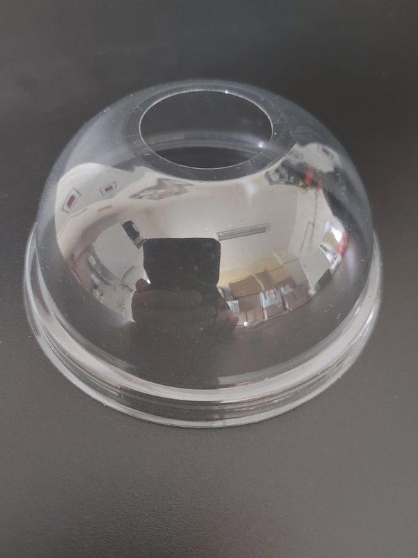 Vypouklé víčko rPET s otvorem, průměr 95 mm, na kelímky 0,3 l a 0,4 l