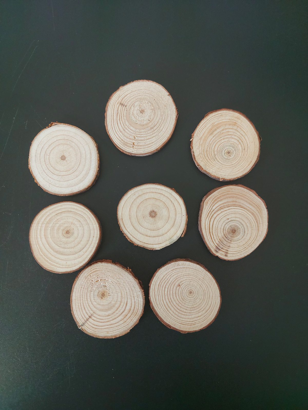 Specifikace: průměr 40 až 50 mm, tloušťka 5 mm, přírodní nelakované dřevo
