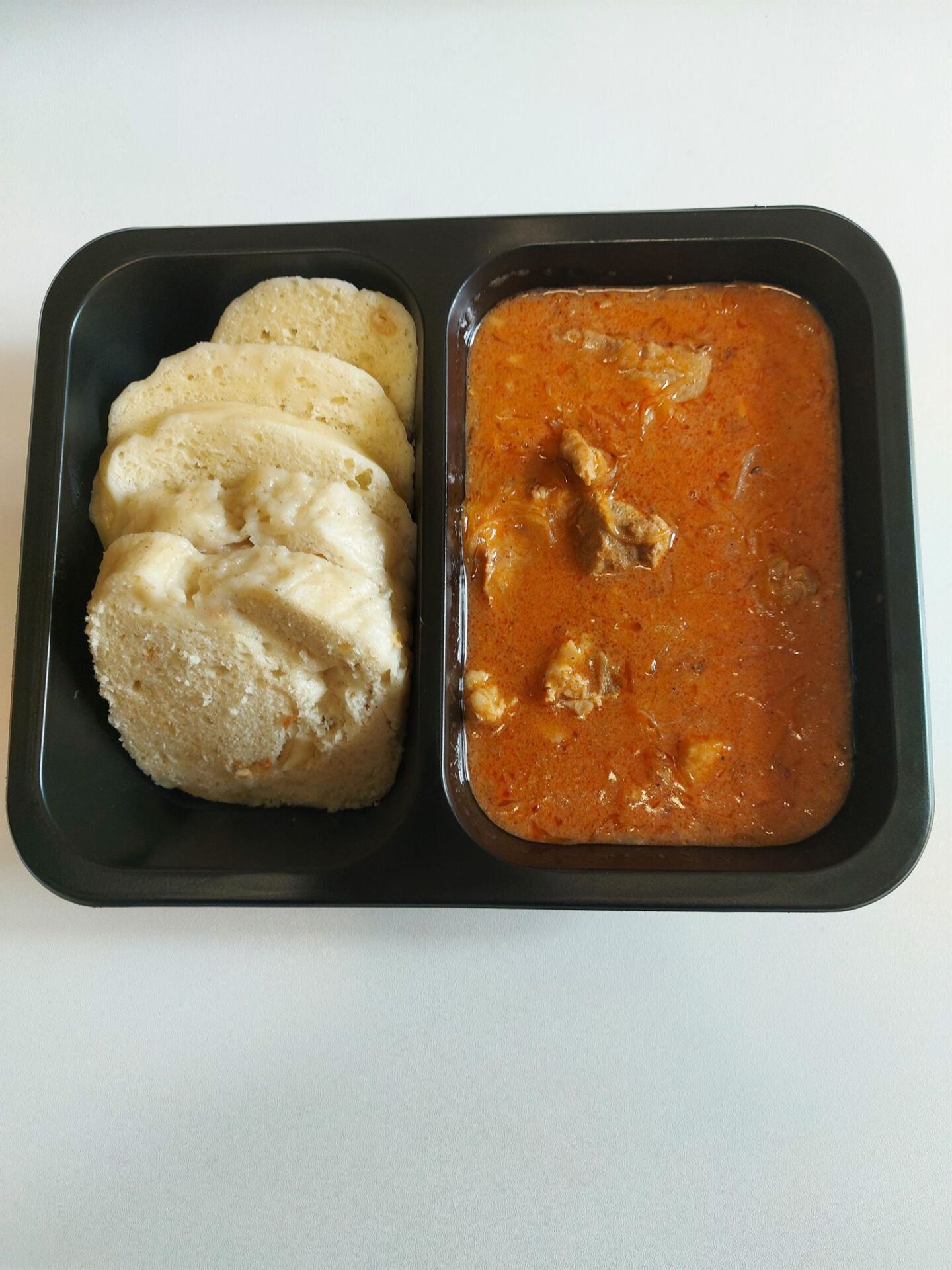 Dvoudílná černá zatavovací miska z polypropylenu (PP) je ideálním řešením pro balení, přenos a rozvoz hotových jídel v gastronomii. Díky dvěma odděleným sekcím umožňuje oddělené balení hlavního jídla a přílohy bez vzájemného promíchání.